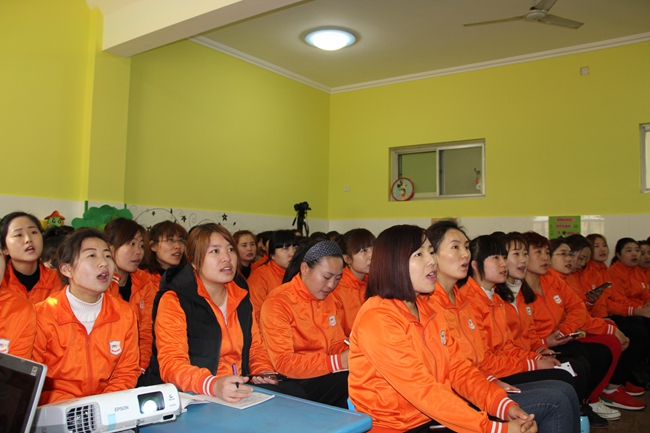 2017年3月5日山东省枣庄Yojo幼儿园联盟的老师们早早的来到了滕州宏图幼儿园参加“冠军宝贝”的培训。